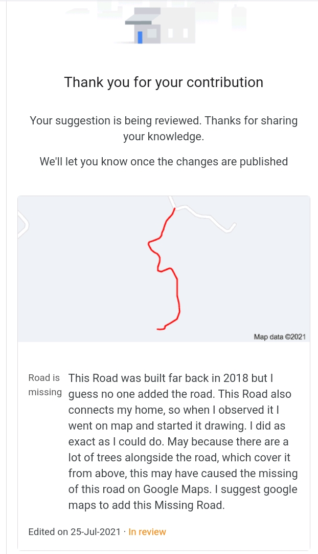 How much time will it take to publish a road on Google maps, I had