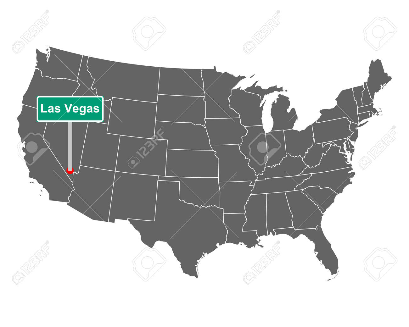 Mapa De Los Estados Unidos Con Señal De Carretera Las Vegas